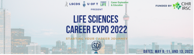 ‘Starting your career journey’ with this motto, the Life Sciences Career Expo 2022 (LSCE) brought together over 400 attendees from all across Canada and beyond with educators, government stakeholders, researchers, and industry professionals from over 25 companies. This much-anticipated annual event, facilitated by the Life Sciences Career Development Society and the University of Toronto, took place virtually on May 9th, 11th, and 13th, 2022 between 12 PM – 5 PM EST.